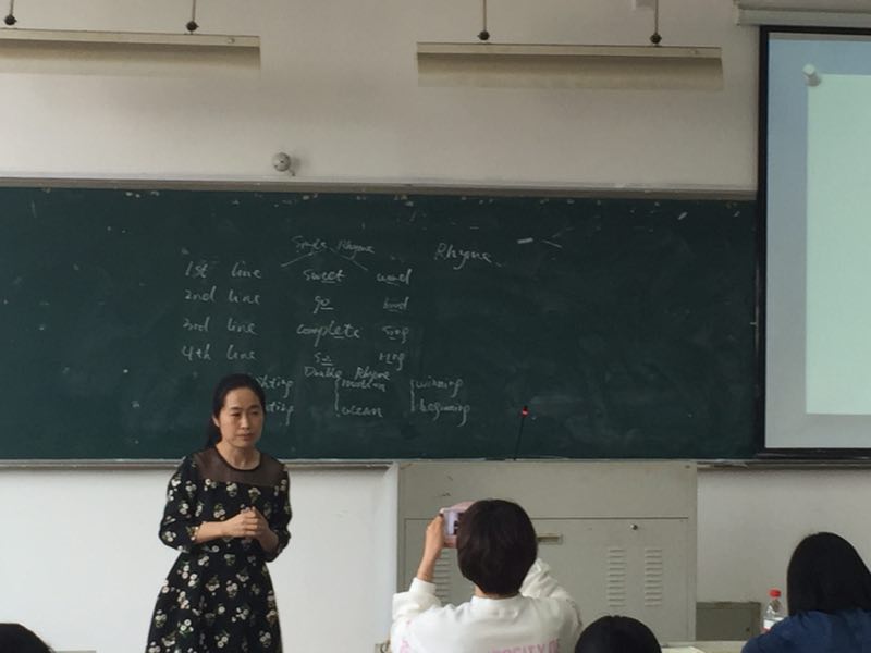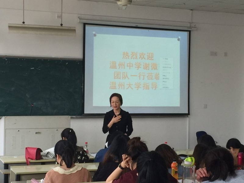 活动由英语(师范)专业系主任杨开泛老师主持。首先是学院副院长毛继光老师讲话。他代表学院对谢微微老师团队表示欢迎和感谢。同时对在座的同学们提出要求,希望大家认真听讲,做好笔记并有所感悟。然后,由刘建国副院长给现场的八位教师颁与了荣誉证书。接下来,七位来自温州中学的一线教师按顺序给在座的同学们带来了写作、词汇、语法、听力等七个不同主题的现场示范教学。老师们各个面带微笑,声音洪亮,课程设计层次清晰,板书简单明了,教态自然,大方自信,给同学们留下了深刻的印象。七位老师结束了示范教学后,谢微微老师对七位老师的示范做出总结,并告知在座的同学们在教资面试时应该注意的点,使同学们对此次示范教学有了更清晰的认识。最后,学生代表屠婧斓同学发表自己在这次活动中的感悟,并对所有的老师表示感谢。