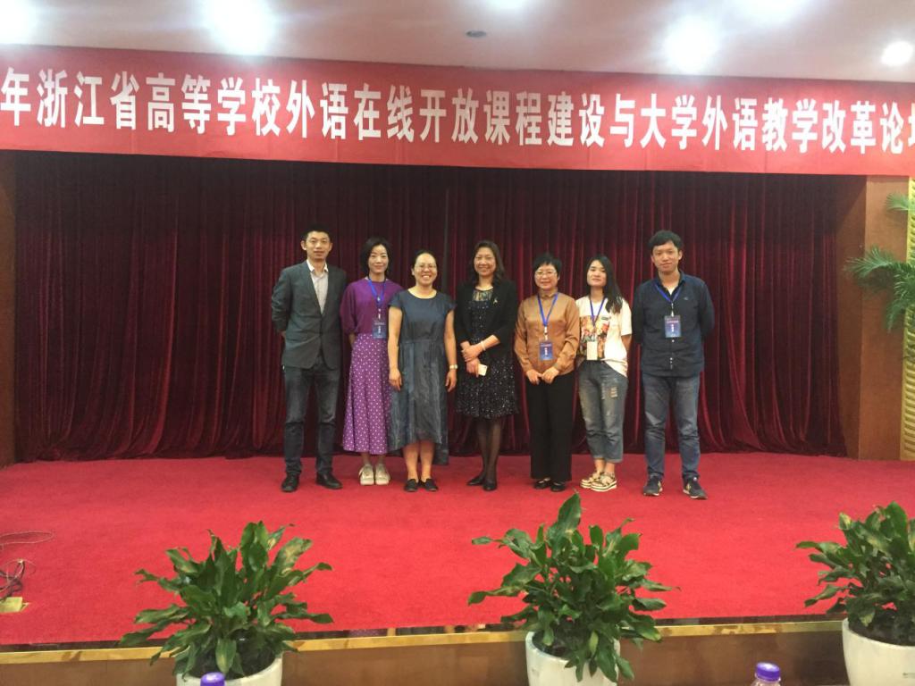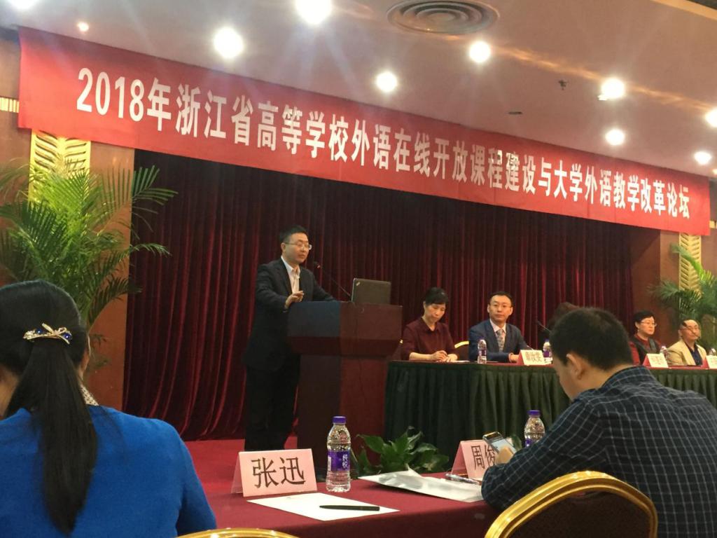 2018年浙江省高等学校外语在线开放课程建设与大学外语教学改革论坛于4月28日在浙江杭州举行。本次会议是为了推进外语在线开放课程的选题、课程设计,推动浙江省外语在线开放课程联盟的成立,分析2017年国家精品在线开放课程团队案例以及共享研讨本省在线开放课程建设选题与应用。会议由浙江省大学外语教学研究会和高等教育出版社有限公司联合承办。新葡萄官网朱晓申副院长、张莲妹老师、蒋艾峰老师以及部分英语课程与教学论研究生参加了此次论坛。