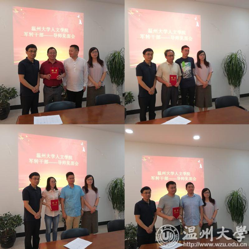 见面会上,首先由骆锤炼副院长简单介绍了此次转业干部进高校学习专项培训任务的具体情况及前期工作。接着四位军队转业干部分别做了自我介绍,表达了学习的愿望与态度。吴静书记代表学院对四位转业干部选择新葡萄88805官网表示热烈欢迎。最后举行了学员与导师结对仪式。
