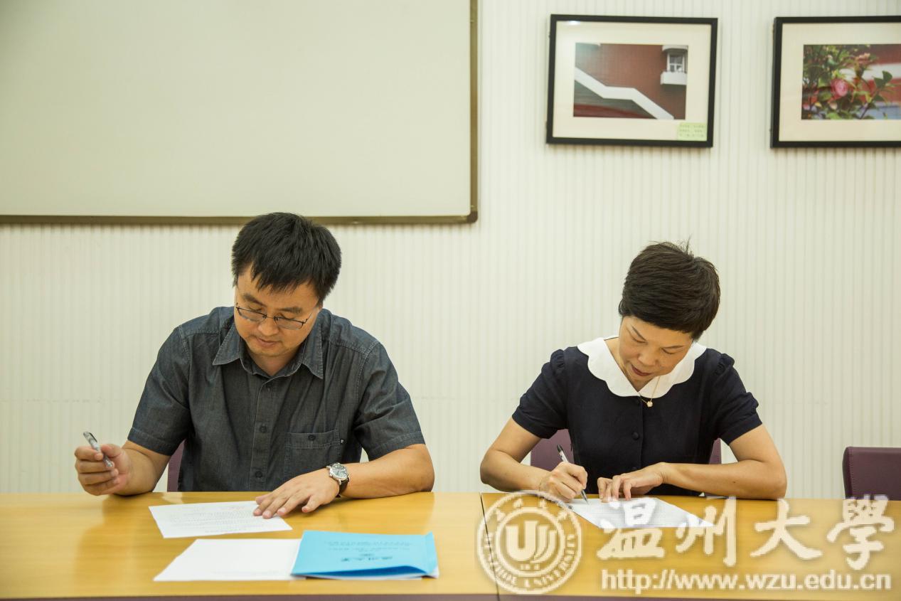 新葡萄官网院长孙良好,副院长席留生,英语学科教学硕士点负责人李宋昊,17级英语学科教学研究生吴丹银,王伊力;温州市绣山中学校长林晓斌,副校长王崴然,英语教研组组长林秋玲等参加了此次签约仪式。