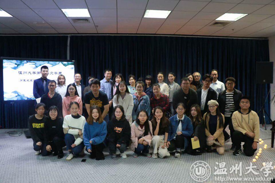 我校第二届文学周闭幕式暨双语诗歌朗诵会于2018年11月16日晚在育英图书馆213会议室落下帷幕。出席本次活动的嘉宾有温籍海外华文作家张翎,学者刘艳、东南大学副教授张娟、诗人池凌云、作家马叙、慕白、郑亚洪、周吉敏,以及新葡萄官网院长孙良好、副院长朱晓申、副书记朱启鑫。此次活动在朱启鑫老师的致词下拉开帷幕。