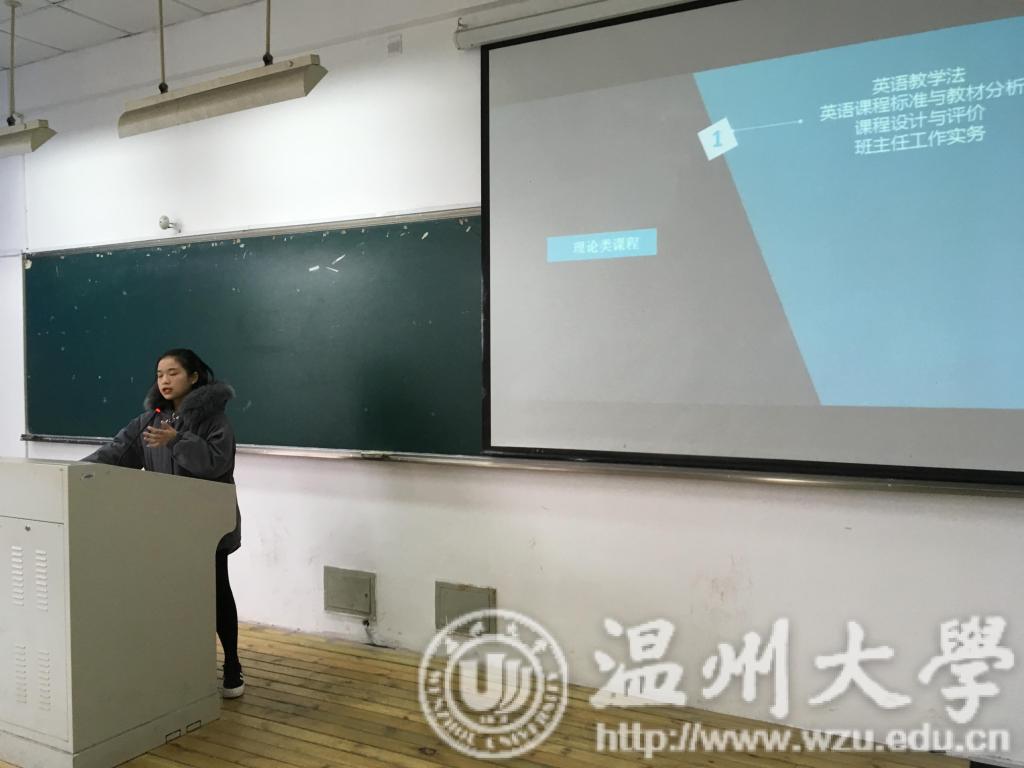 2018年12月12日下午,新葡萄官网外语系举行2018年英语(师范)专业宣讲活动。外语系系主任杨开泛老师、15英本1班蔡纯洁同学、16英本1班沈忆汝同学从英语专业的培养理念、职业发展、未来趋势、英语学习、卓越教师发展等方面宣讲了英语专业。