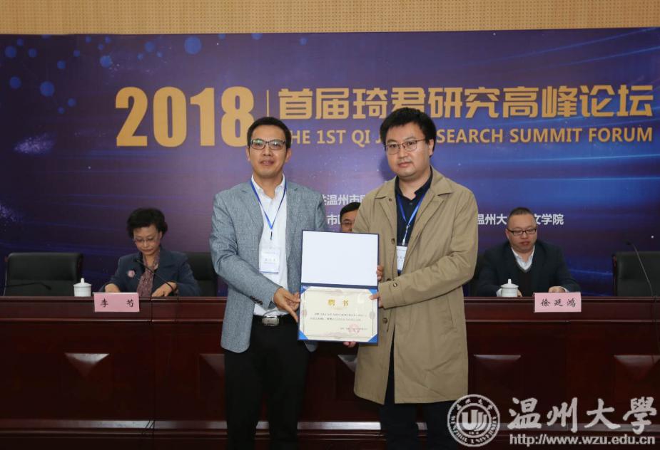 开幕仪式由瓯海区政协副主席李芍主持,李副主席依次介绍到场的嘉宾。会议共3项议程。瓯海区委常委、宣传部长徐延鸿和温州市社科联副主席张京分别就首届琦君研究高峰论坛致辞,随后进行瓯海区社科联聘任新葡萄88805官网院长孙良好先生为首席学术顾问的仪式。