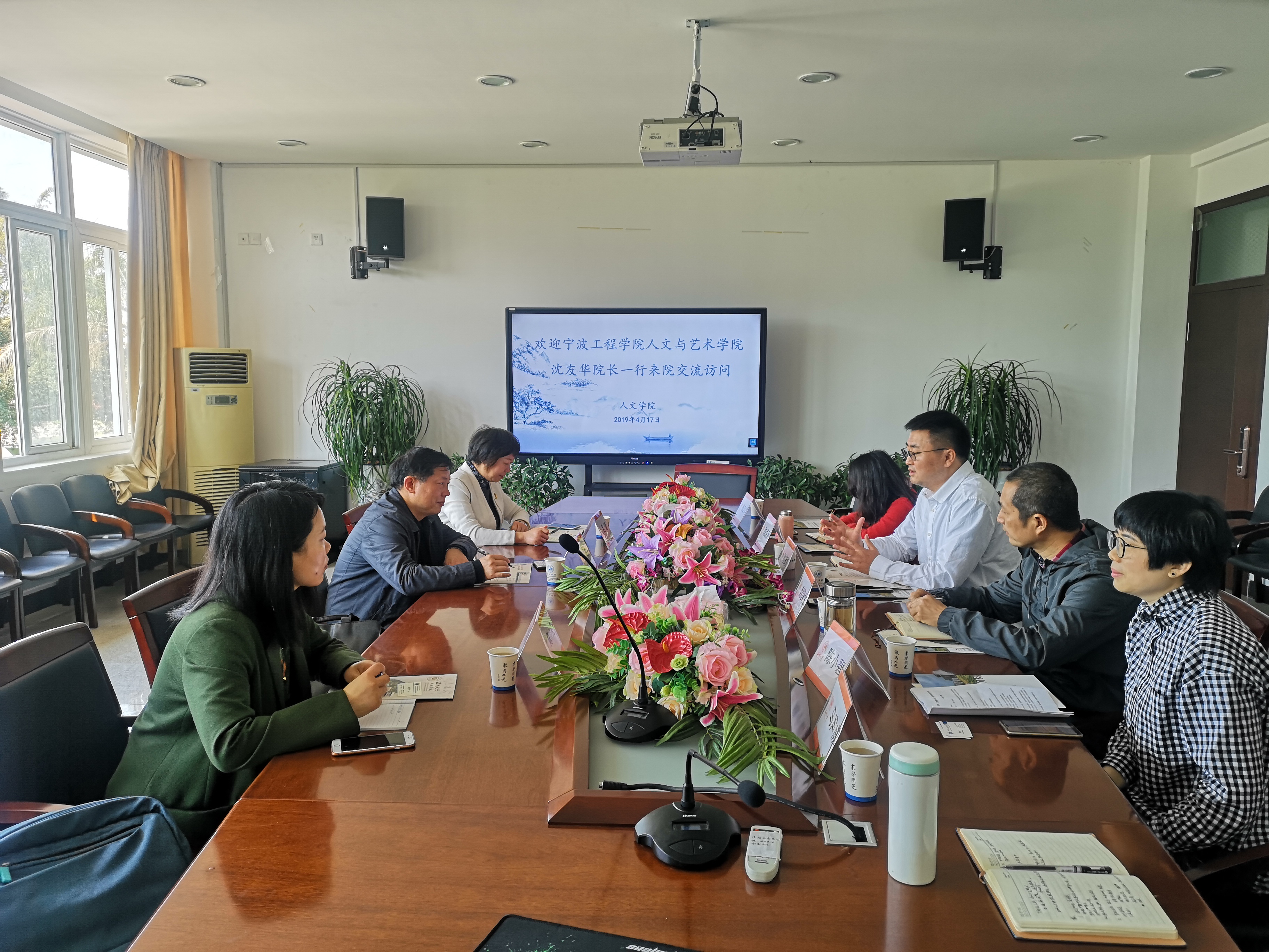 4月17日上午,宁波工程学院人文与艺术学院院长沈友华,副院长吕瑾及中文系副教授陈小亮来新葡萄官网交流访问。新葡萄官网孙良好院长、席留生副院长、中文系主任陈源源、广告系主任徐卫华、大学语文负责人陈小碧和办公室主任马声威热情接待了他们。双方就应用型学科专业建设、公共课程大学语文教学情况、专业硕士人才培养等方面进行了深入交流。