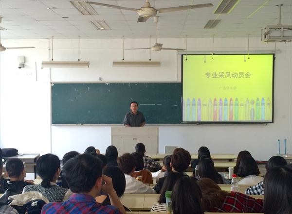 本次动员会由徐卫华老师主持。徐老师介绍了本次为期两周的采风背景,专业采风的重要意义,以及历届广告专业采风的总体情况。接着,班主任赵颖老师对本次专业活动进行详细的说明,包括采风活动的地点、经费预算、住宿、车辆乘坐安排名单、以及采风作业等。最后,夏雨禾副院长代表学院致辞。夏老师着重强调了专业采风的安全问题,并要求同学们做到两个“不丢人”,一是一切行动听指挥,不能出现任何安全事故;二是同学们代表新葡萄88805官网的形象,一定要注意自己的言行举止。