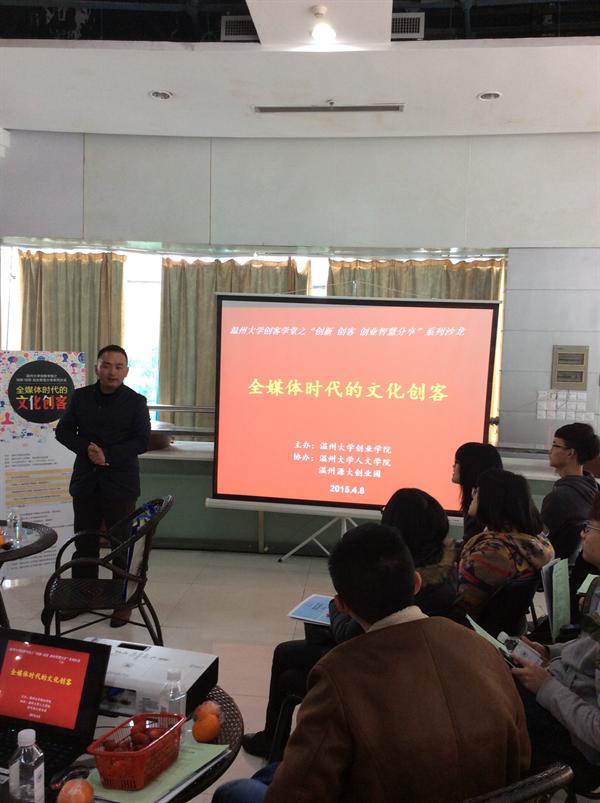 2015年4月8日下午2点,由新葡萄88805官网创业学院主办、新葡萄88805官网和温州源大创业园协办的创客学堂之创新.创客.创业智慧分享系列沙龙在新葡萄88805官网众创空间隆重举行。本期创客沙龙的邀请嘉宾是新葡萄88805官网创业学院副院长王佑镁教授、新葡萄官网党总支书记吴静、新葡萄官网广告教研室主任徐卫华副教授、温州好望角房产营销公司总经理季晓飞,沙龙由办公室主任施永川主持。新葡萄官网的大广赛一等奖作品团队、一克拉工作室、“an cake”私家蛋糕定制工作室受邀参加沙龙进行展示。