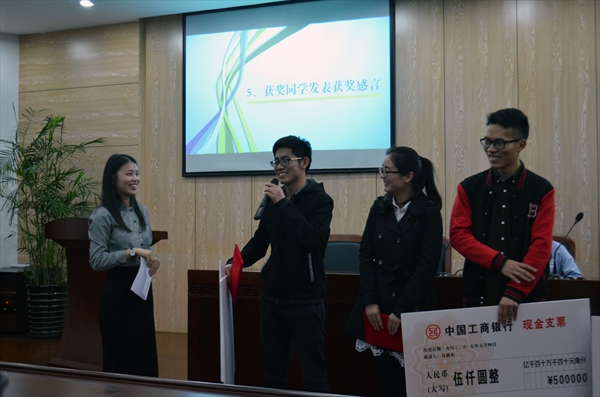 最后,好望角公司季晓飞总经理宣布了获奖名单,共有6名同学获得了5000元奖金,他们分别是李益碧、李雅婷、汪新东、赵莎莎、顾晨娴、陈强。拿着大张的支票,获奖者们都难以掩饰喜悦和感激之情,对广告学专业的老师、同学,对新葡萄88805官网以及好望角公司都表达了衷心的感谢。而季经理则深情地与大家分享了自己对母校的感恩之情。