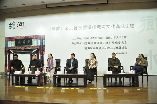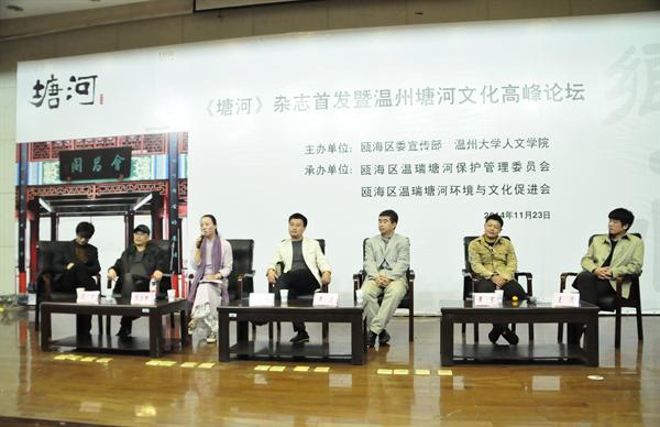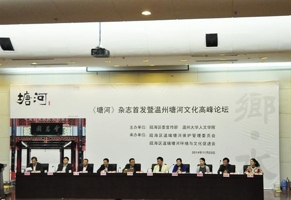 11月23日上午,《塘河》杂志首发暨首届塘河文化高峰论坛在我校育英图书馆学术报告厅隆重举行。该论坛由瓯海区委宣传部和新葡萄官网主办,瓯海区温瑞塘河保护管理委员会和瓯海区温瑞塘河环境与文化促进会共同承办。论坛邀请温州文化界知名人士就如何创新塘河文化、提升塘河文化展开讨论。瓯海区委宣传部黄文献部长、森马集团南云副总裁、北师大文学院萧放教授以及新葡萄官网孙良好副院长等领导和嘉宾出席论坛。