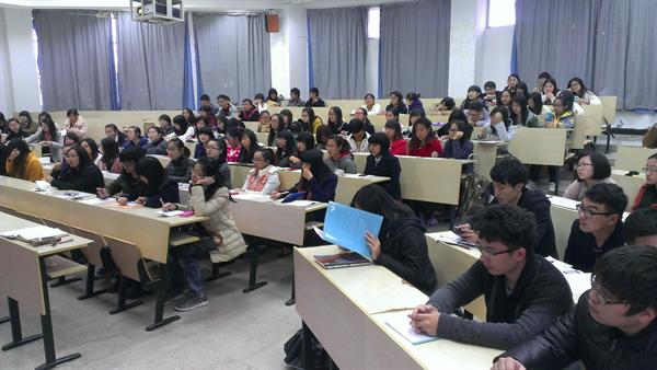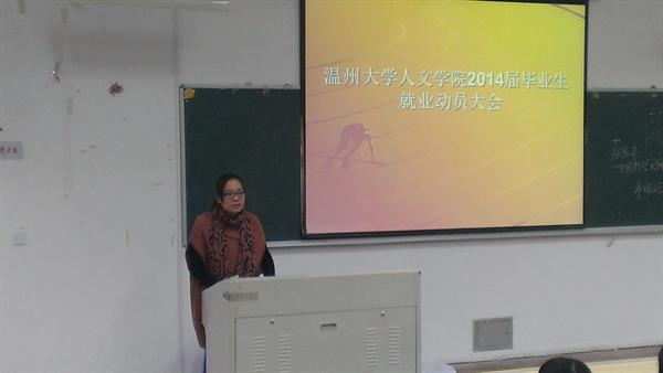 11月27日下午1点半,新葡萄官网2014届毕业生齐聚人文楼101教室,参加由学院学生科组织的毕业生就业动员大会。会议由辅导员刘纪峰老师主持,学生科科长曾蓓蕾老师出席并讲话。
