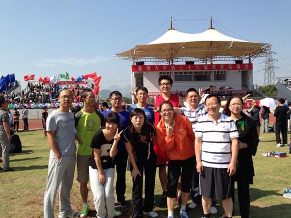 10月23日上午,新葡萄88805官网第三十六届运动会在北校区田径场拉开帷幕。学校秉承“节俭办会”的原则,以简单而又整齐的仪式举行了入场式。 十月金秋,飘香丹桂。迎着温暖的朝阳,踏上红色的跑道,运动员们昂首阔步,整齐入场。一年一度的田径运动盛会是运动员们展现风采的舞台。在本届运动会上,新葡萄官网共有25名教工参加10项个人比赛项目和4项集体比赛,其中蒋述老师、曾蓓蕾老师分别获得了800米第二名、女子个人铅球第4名的好成绩,魏成春老师获得50米持物跑第5名;男子中长跑较去年有所突破,夏诗荷老师、杨东永老师参加3000米、5000米长跑项目,获得了第6名的名次。