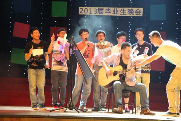 晚会一开始是学院团委学生会带来的影子舞,灯光交错,时光晃动,幕布上演绎着大学里相逢和别离的故事,熟悉的图书馆,天鹅湖,熟悉的场景,四年的欢声笑语聚首分离一一呈现,开场舞结束后,晚会迎来第一篇章:“在温大人文的日子且歌且诗——我遇见你,像半月牙儿的青涩。”当C8宿管大叔抱着吉他带着新葡萄88805官网306寝室孩子们上台时,全场轰动,掌声雷鸣,四年的集体生活,宿管叔叔阿姨像亲人一样照看着我们的起居,如今正是作别的时候,一曲《滴答》充满了爱与温情!11本3班的学生独具匠心为大家演艺《在人文的日子》,学院的一幕幕重新回到我们身边,怀念着日日不曾离去的一草一木。第二篇章:“青春不打烊。”所以我们高声颂着海子的诗歌,长鼓咚咚响起来,所以跳起肚皮舞,在我的歌声里,告诉你但愿人长久。不知不觉,你们的光阴匆忙间走成了故事。篇章穿插的环节是“圆梦”,主持人现场抽学号,将写满毕业心愿的气球扎破与大家分享毕业生亲手写下的愿望卡,并且尽力帮助他们完成一次毕业小小的心愿。第三篇章:今天晚上,很好的月光,风吹麦浪,但却要在《张三的歌》后跟你说《再见》,再回首与你道一声,珍重!栖风文学社带来的话剧《今天晚上,很好的月光》真情演艺大学四年理想爱情与现实的矛盾,舞蹈,歌声,话剧,今天晚上,声声的祝福里充满了惜别的感伤,有眼泪,有交错的灯光,有笑容,有漫天飞舞的回忆,有即将毕业的你们,也有送别的我们,这一刻,请让时光放慢脚步。