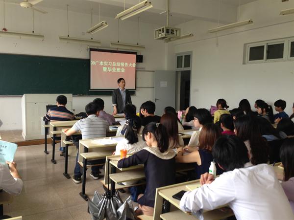 2013年5月10日10点,在新葡萄88805官网211教室召开了09广本实习总结报告大会。会议到场人员有广告系主任张信国、教学科伍海燕以及广告专业任课教师。本次会议由09广告班班主任颜志香主持,整个会议在轻松的气氛下圆满的结束。