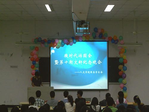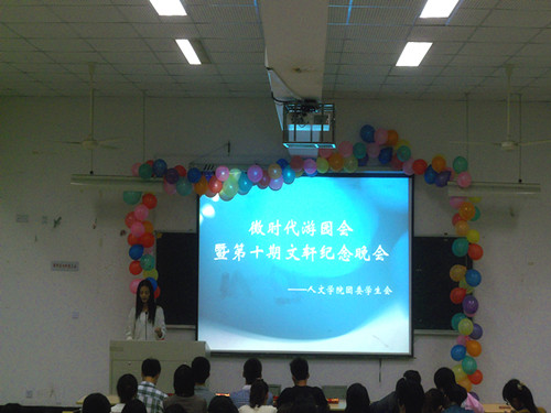 2012年5月20日晚上6点30分,在人文楼举行了"微时代"游园会,暨第十期《文轩》纪念晚会。新葡萄88805官网学生辅导员麻法全老师和叶豪芳老师出席了本次游园会。本次纪念晚会由新葡萄88805官网编辑部和组织部联合举办,大一大二各班各自承办了属于自己班级特色的游园项目。本次游园特邀校园媒体朋友过来参加,新葡萄88805官网大一大二的同学也积极参加了这次游园活动。