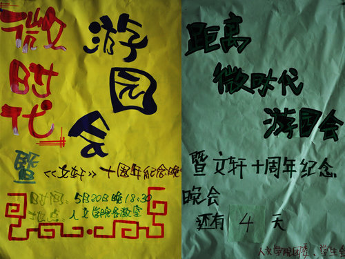 光阴似水,不知不觉,《文轩》已经走到了第十个年头,在十周年庆典之际,5月20日,新葡萄88805官网团委、学生会将举办一次微时代游园会暨《文轩》发布会,届时将会有第十期《文轩》的正式发布,一系列以"微"为主题的活动,如微小说,微情书,微图片,微剧场,微空间等等,欢迎广大师生前来参加!