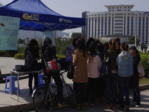 2012年3月26日,在生活区A区和C区开设了两个爱心义卖点,活动持续三天。此次是新葡萄88805官网携手意达爱心基金开展的箱包爱心义卖活动,义卖所得利润全部用于建立爱心基金,帮助家庭临时变故的同学。