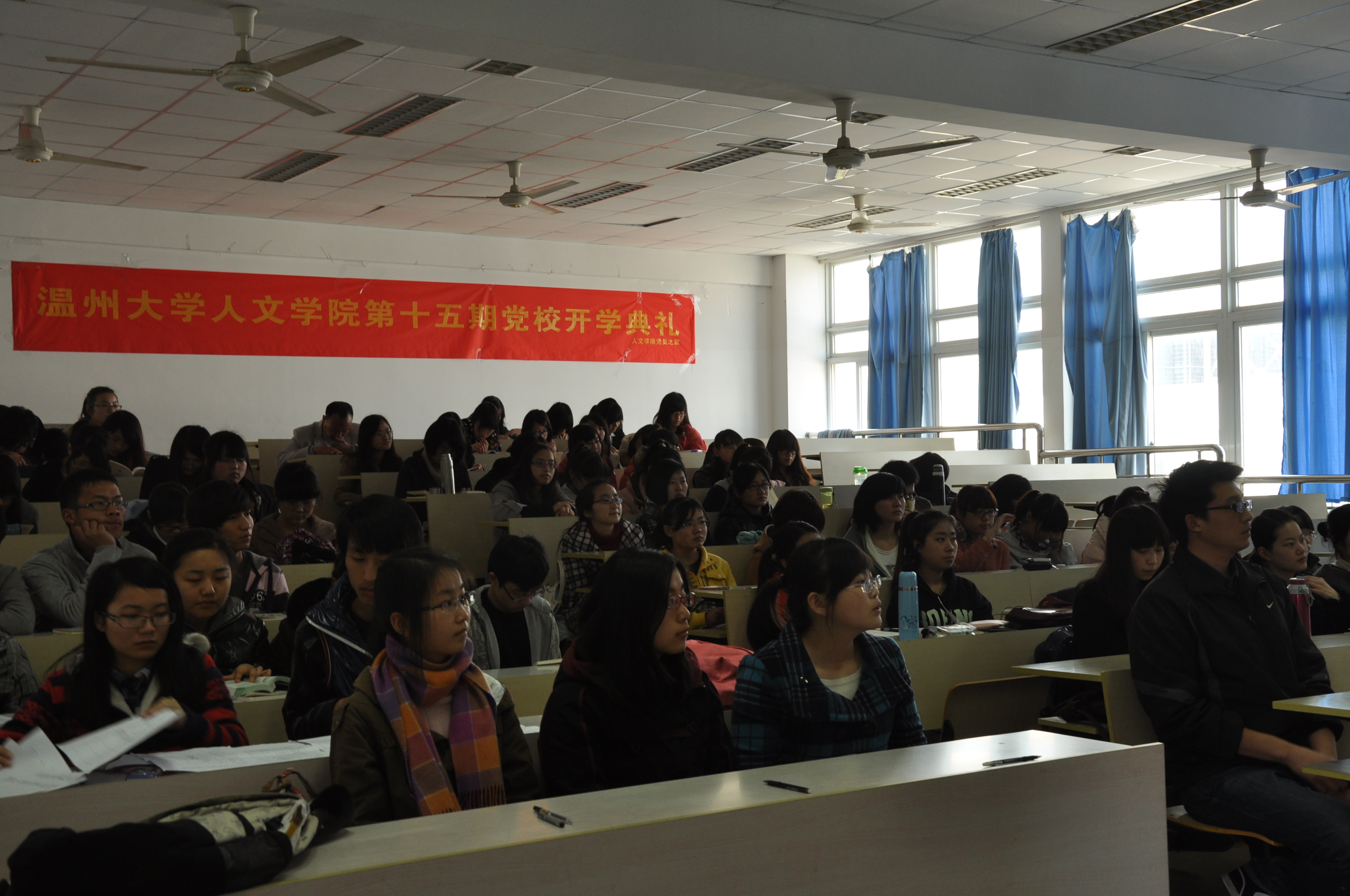 2012年3月21日下午14时,在北校区1-302教室举行了新葡萄88805官网第十五期党校开学典礼暨如何树立正确的入党动机讲座。出席开学典礼的有新葡萄88805官网党总支书记周剑平老师,新葡萄88805官网研究生辅导员刘纪峰老师,以及51名预备党员和77名党校学员。