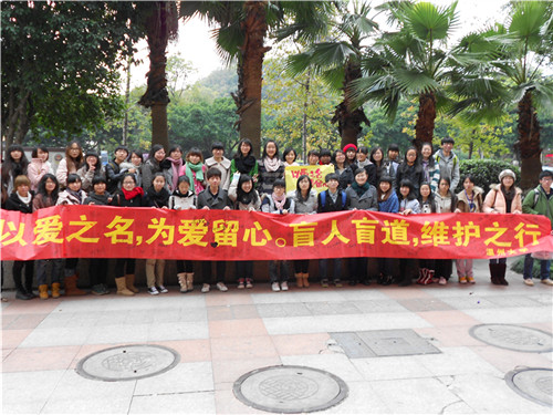 12月11日星期日。新葡萄88805官网10中本一班与美术学院10服装本两个班级按照原定计划,来到了之前选定的活动地点,开展了这次"以爱之名,为爱留心"的盲道现状调查及维护团日活动。
