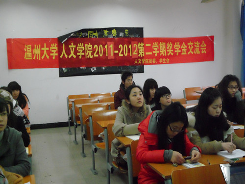 在2012年2月17日下午三点半,在北1-105教室,新葡萄官网召开了奖学金交流会,邀请了09至11级的三个级段各班的班长和学委来参加。
