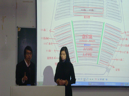 2011年12月9日晚7点,新葡萄88805官网团委学生会在人文楼201室正式召开了第十届话剧节表演大赛决赛动员大会。本次大会有新葡萄88805官网学生辅导员麻法全老师出席,文娱部部长戚丽珊同学主持,团委学生会全体干部参加,在话剧节即将演出之际做了最后的准备。