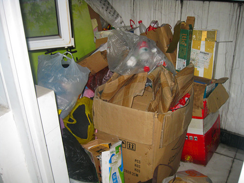 空气潮潮的,微微飘着小雨,可是这丝毫没有影响到志愿者们如火的热情。8点30分,早已准备就绪的志愿者们向着各自分配好的目的地出发。只见她们忙碌的身影在来回穿梭着,不放过任何一个饮料瓶,也不舍弃任何一双旧鞋,大捆纸箱、大包废书被他们全揽下,也不曾听到他们叫苦叫累。大约在9点钟,本次活动随着这场淅淅沥沥的雨落下帷幕,志愿者们看着他们的累累硕果,心里甚是温暖。