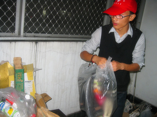 2011年11月18日,新葡萄88805官网人文思源青年志愿者协会在温大C区学生宿舍继续进行废旧物品回收的常规活动。同学们都很热情地配合志愿者们的活动。