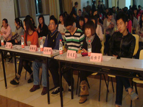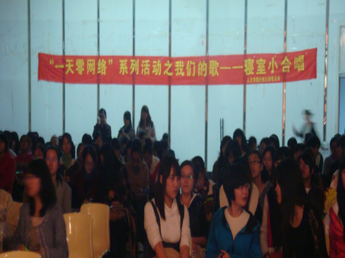 11月21日晚6点30分,新葡萄88805官网一天零网络系列活动之"我们的歌--寝室小合唱"决赛在大学生活动中心多功能厅拉开了序幕。来自音乐学院的评委王倩和新葡萄88805官网党支部副书记骆锤炼,辅导员刘纪峰,团委学生会副主席蒋文晨,团副张恒宇等各位嘉宾悉数到场观看。