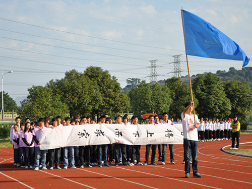 雄壮的运动员进行曲在激情中响起,新葡萄88805官网的运动员们正迈着整齐划一的步伐向主席台前进。只见他们身着粉色院服,抬头挺胸,大踏步向前,带着青春的自信与梦想。点点粉色在清风中更显温馨,也让人感受到了在爱的凝聚下的团结与热情。走在方阵最前方的举旗手,高举新葡萄88805官网院旗,蓝色的旗帜迎风招展,新葡萄88805官网的拼搏之旅吹响启程的号角。雄纠纠气昂昂,运动员们在主席台前立定。随着一声"人"字响起,运动员们迅速就位,飞快地排成了"人"的形状,生动形象。两边的横幅拉开"路漫漫其修远兮,吾将上下而求索"不禁让人眼前一亮。接着,人文学子们又以迅雷不及掩耳之势在"文"声中摆出了"文"字造型,干净利落。这时候,出乎意料的事发生了。"太极"声响起,队员们再一次开始迅速变换队形。人刚站毕,"变",大家迅速脱去外面的粉色院服。黑白长袖映入眼帘,逼真的造就了"人文太极"!"文韬武略,扬我人文"的口号雄浑响亮的在操场上空回荡,经久不息。观众席上顿时爆发出雷鸣般的掌声和阵阵喝彩。