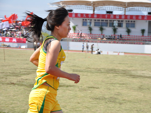 远远的,跑道上,黄色的身影闪亮醒目,那是我们新葡萄88805官网的刘菲菲同学。她正迈着均匀的步伐,绕过一圈又一圈,征服漫漫长途,向终点进发。汗水挥发在地,在红色跑道盛开着青春的花朵。迎着风,奔跑,生命的姿态因着运动而辉煌。