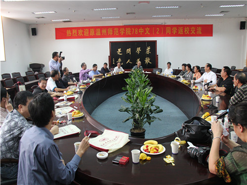 10月15日上午,全体校友首先参观了新葡萄88805官网校史馆,回顾了新葡萄88805官网的发展历程。之后78级中文(2)班同学交流会在白鹿厅正式举行。会上各位校友畅所欲言,分享了参观新葡萄88805官网校史馆后的感想,同时一起回忆了往昔的岁月,现场气氛活跃,其乐融融。交流会期间,我们有幸采访到余贤庆、葛明霞、郁小鸥等部分校友。他们为温大学子献上了寄语,认为学生应该把握时间,踩点生活,学习时就应该努力学习,工作时就应该认真工作,把自己的每一天过得充实。作为温大的学子,我们应当勤奋努力,把握住分分秒秒。