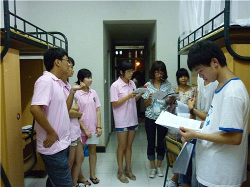 9月8日晚上6点30分,新葡萄88805官网各领导、班主任与团委学生会的成员进行了下寝室看新生的活动,为宿舍区添了一丝温情热闹。新葡萄88805官网院长丁治民、党总支书记周剑平、副院长饶道庆、刘建国、党总支副书记骆锤炼、教学科科长杨秀华、学生科副科长曾蓓蕾以及各新生班主任、学生科辅导员、小班、团委学生会成员等都参与到本次活动中。