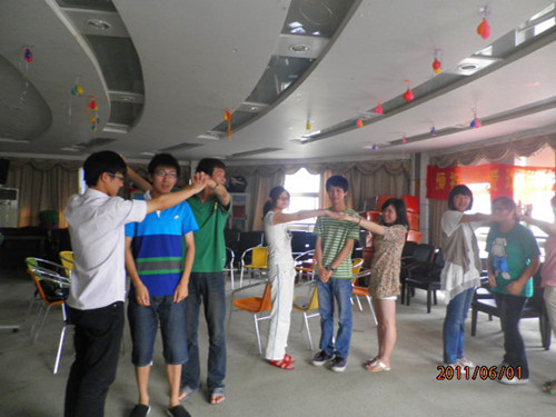 团体辅导开始。首先是一个热身活动,名为"叠罗汉",目的在于增进彼此相识,在较短时间内认识更多的人。此活动结束,先由各个心理委员谈谈感想,然后曾老师总结心理委员在班内主持活动时同样可以采用这样的活动来增进彼此的熟知度。其次是名为"刮台风"的游戏,此游戏的目的在于活络气氛,增强自我的认识。同样的活动结束,曾老师带领各位心理委员总结了开展此活动的意义。第三个活动名为"抓快乐",目的在于寻找自己的快乐。第四个活动名为"我的爸爸妈妈",目的在于增进我们对自己父母的了解。同样的在这几个活动结束后,曾老师总结了开展这些活动的意义,并指出心理委员在开展团体辅导时要根据活动的主题来挑选游戏,在活跃气氛的同时也要带给同学们以生活学习的启迪,已达到进行团体活动的目的。