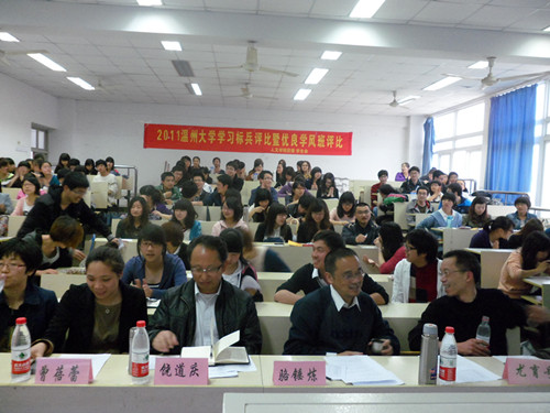 2011年4月22日15点30分,新葡萄88805官网学习标兵评比暨优良学风班评比活动于人文楼202教室举行。出席该活动的有新葡萄88805官网副院长饶道庆、党总支副书记骆锤炼、学生科副科长曾蓓蕾、辅导员叶豪芳和09历本班主任尤育号。新葡萄88805官网学生代表作为大众评委积极参与。