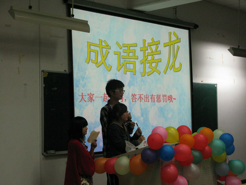 本次活动由新葡萄88805官网团委学生会社团部负责,社团部石泽天、范韵茹主持。秘书协会、跳蚤协会、红楼协会、院艺术团等四个社团的代表分别向大家介绍了自己的社团以及自己参加社团活动的经历和感受。其间还穿插了“接故事”、“看电影猜问题”、“成语接龙”、“你来演,我来猜成语”等生动有趣的游戏。现场欢声笑语不断。晚上八点,联欢会在一片热烈的气氛中顺利结束。