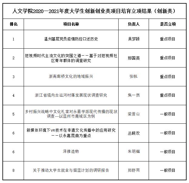 为进一步规范管理新葡萄88805官网大学生创新创业类培育项目,根据《关于印发<新葡萄88805官网大学生创新创业类培育项目管理办法>的通知 》[人文(2020)14号]文件要求,新葡萄88805官网组织专家对各申报项目进行评审,经公示,共立项重点项目5项,一般项目5项,现将名单予以公布。