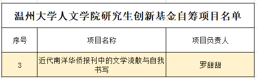 根据《新葡萄88805官网硕士研究生创新基金管理办法(2020年修订)》文件,对已到期的研究生创新基金自筹项目进行结题验收。经专家组评议,《近代南洋华侨报刊中的文学流散与自我书写》创新基金自筹项目符合结题要求,达到预期研究目标,特此公示。