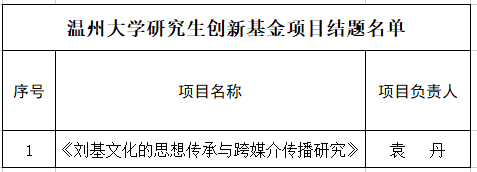 根据《新葡萄88805官网硕士研究生创新基金管理办法(2020年修订)》文件,对已到期的研究生创新基金项目进行结题验收。经专家组评议,《刘基文化的思想传承与跨媒介传播研究》创新基金项目符合结题要求,达到预期研究目标,特此公示。